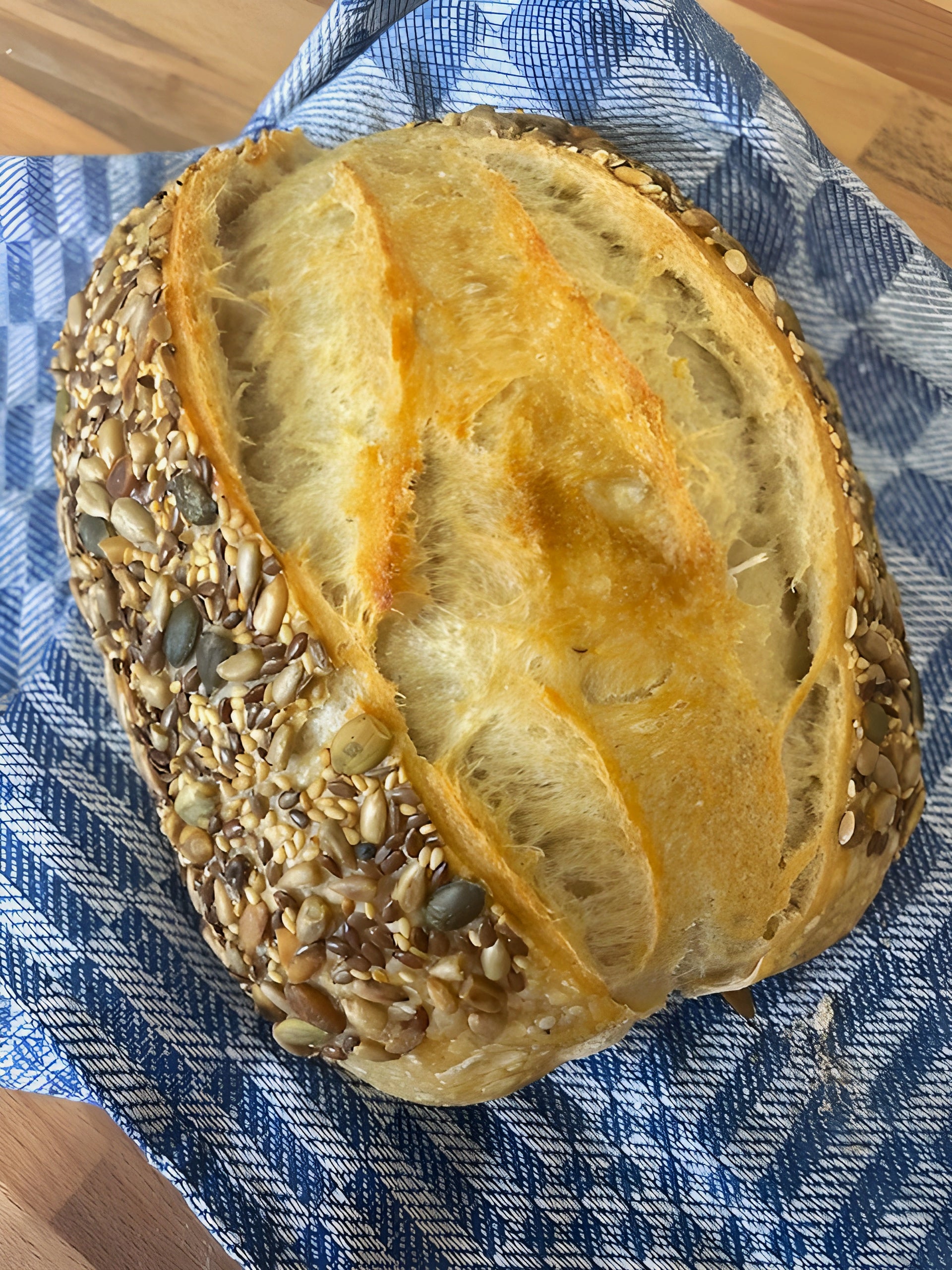 De zadenvariant van onze klassieke Stockholm Desem: luchtig, krokant en boordevol volledige zaden. Denk aan geroosterde zonnebloempitten, pompoenpitten, lijnzaad en sesamzaad, royaal gemengd door het deeg én bovenkant voor extra crunch. Gebakken met een mix van tarwebloem en biologische speltbloem. Knapperig, voedzaam en heerlijk veelzijdig.